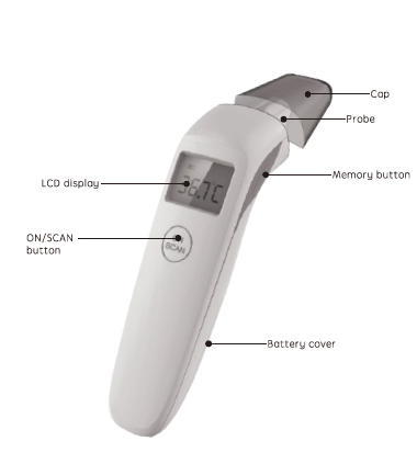 Termómetro compacto y ergonómico de fácil uso, incluye memoria de toma de muestras (hasta 5 pacientes).
